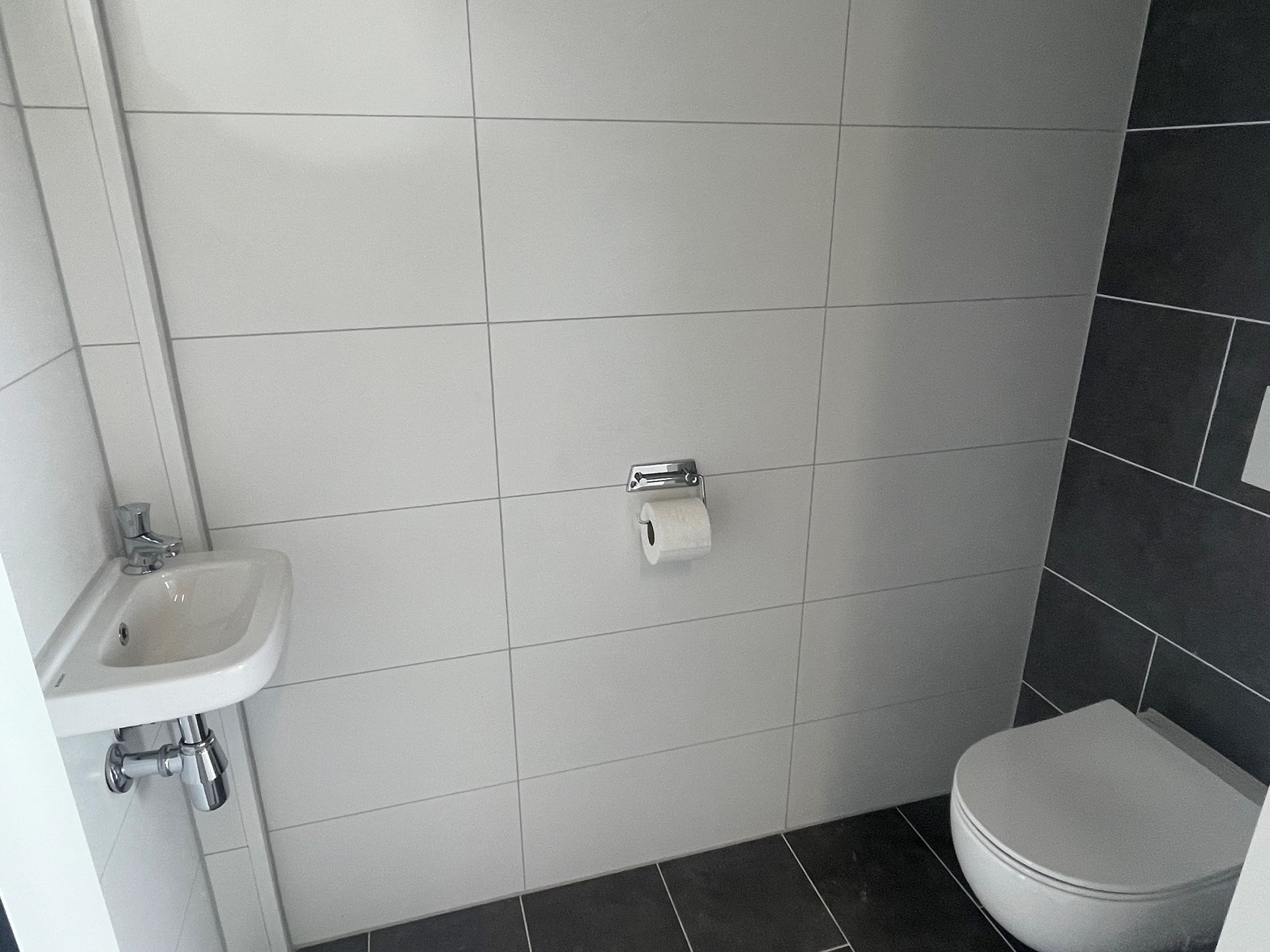 - toilet op de begane grond, volledig betegeld en voorzien van een zwevend toilet en fontein;