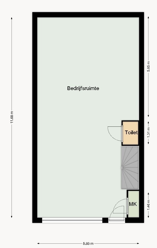 - Onderheide betonvloer, maximale vloerbelasting 1.000 kg/m², deze is grijs geverfd;