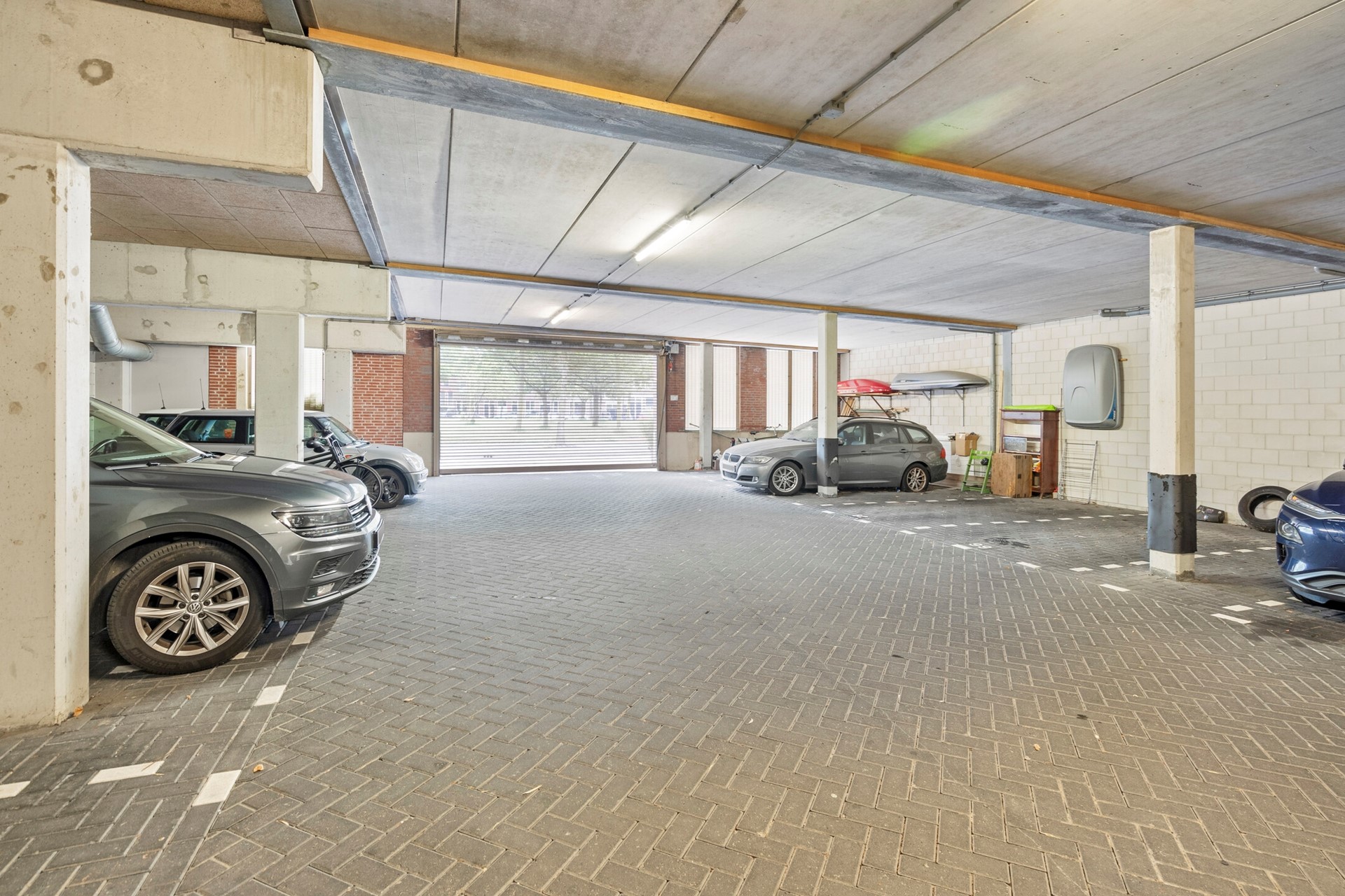 The spacious storage/laundry room (5.08 x 1.80) has storage space with shelves and storage attic, the connection for the washing machine and dryer, heat recovery system and a door to the parking garage followed by the private parking space. Also equipped with extra space under the stairs, with coat rack and shoe rack.