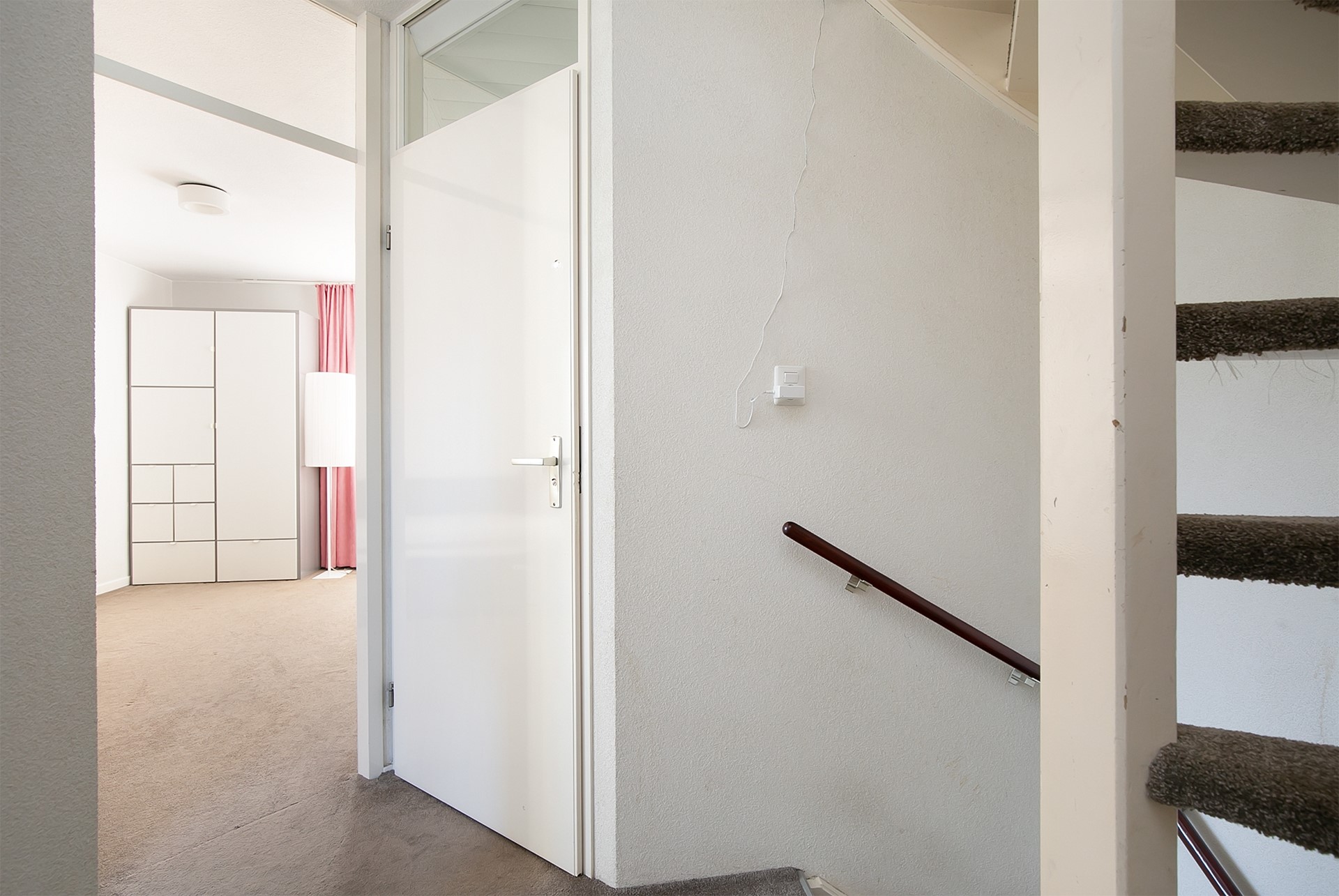 De overloop biedt toegang tot 2 slaapkamers, badkamer en de wasruimte. Middels een vaste trap heeft u toegang tot de 2e verdieping.
