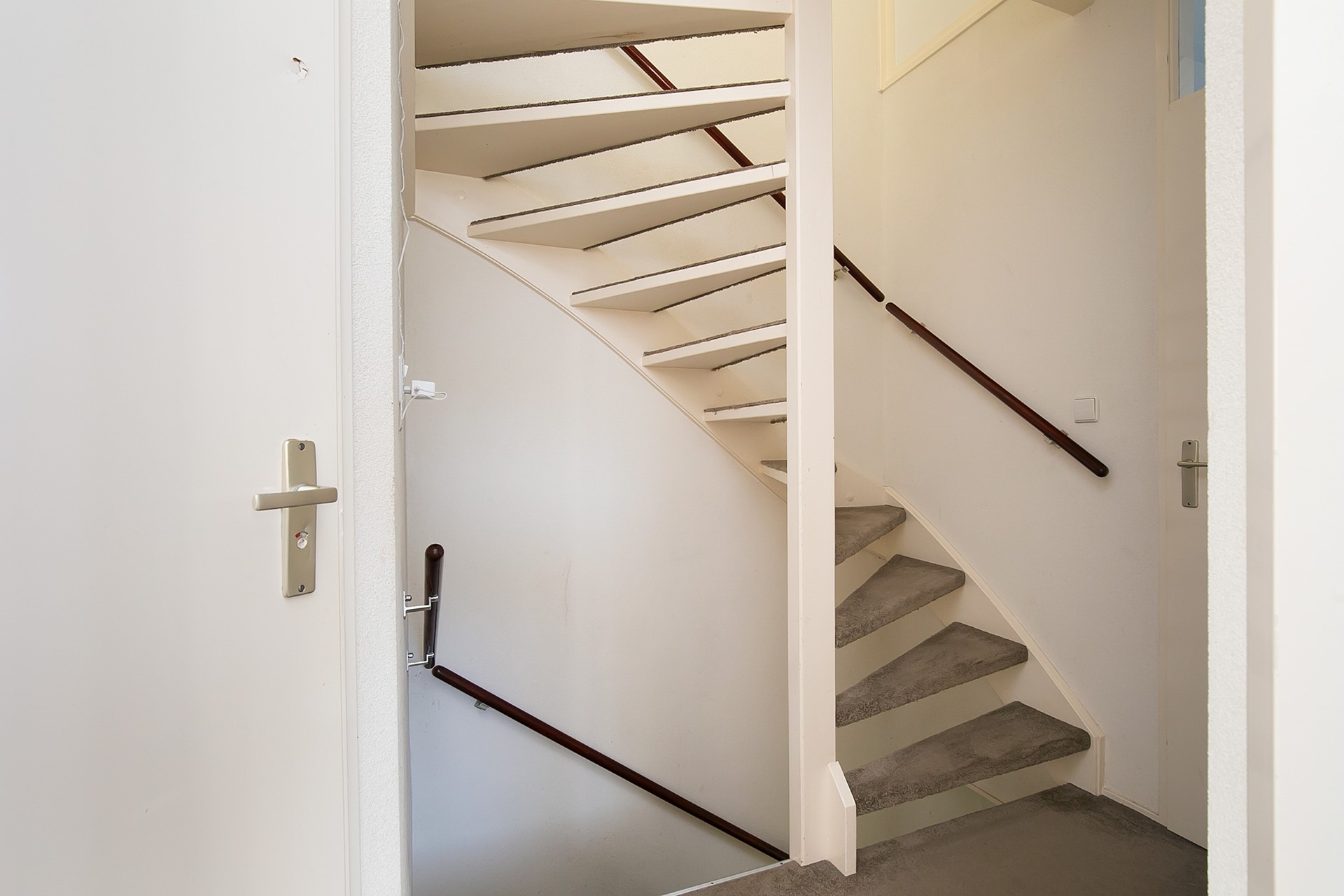 De entree biedt plaats aan het toilet en de meterkast (11 groepen en 3 aardlekschakelaars) en geeft toegang tot de woonkamer. Middels een vaste trap bereikt u de 1e verdieping. De gehele begane grond is voorzien van vloerverwarming.