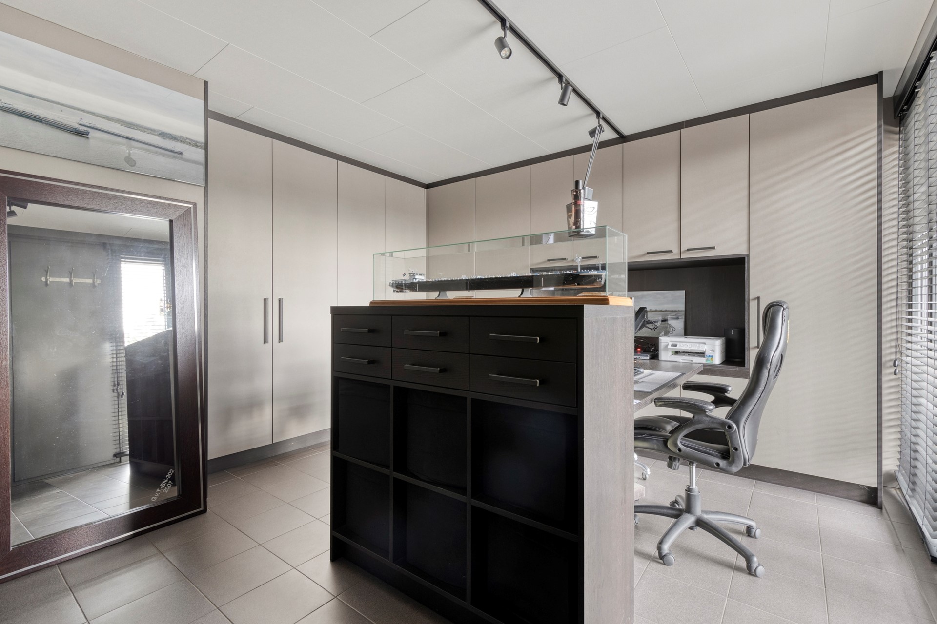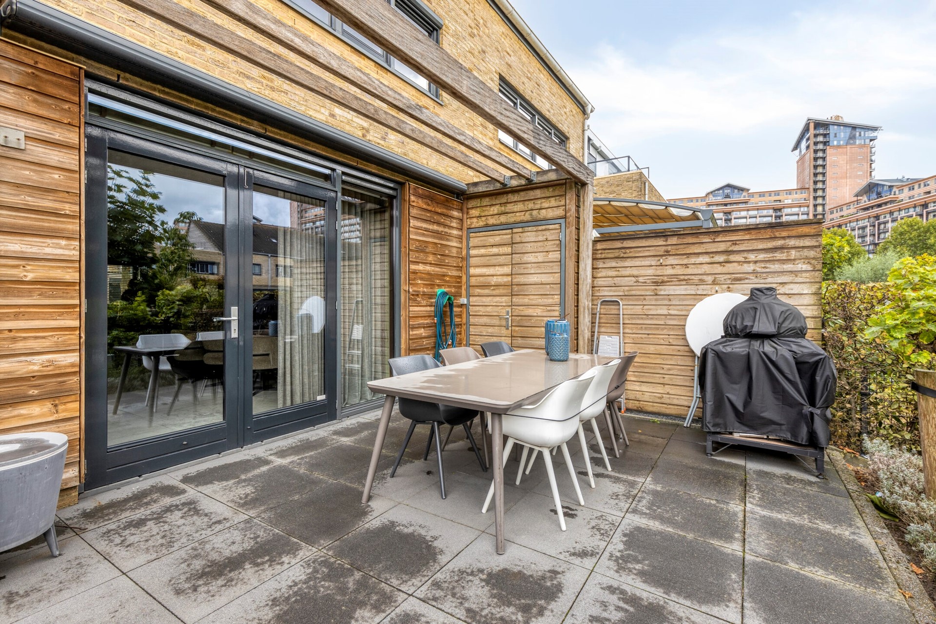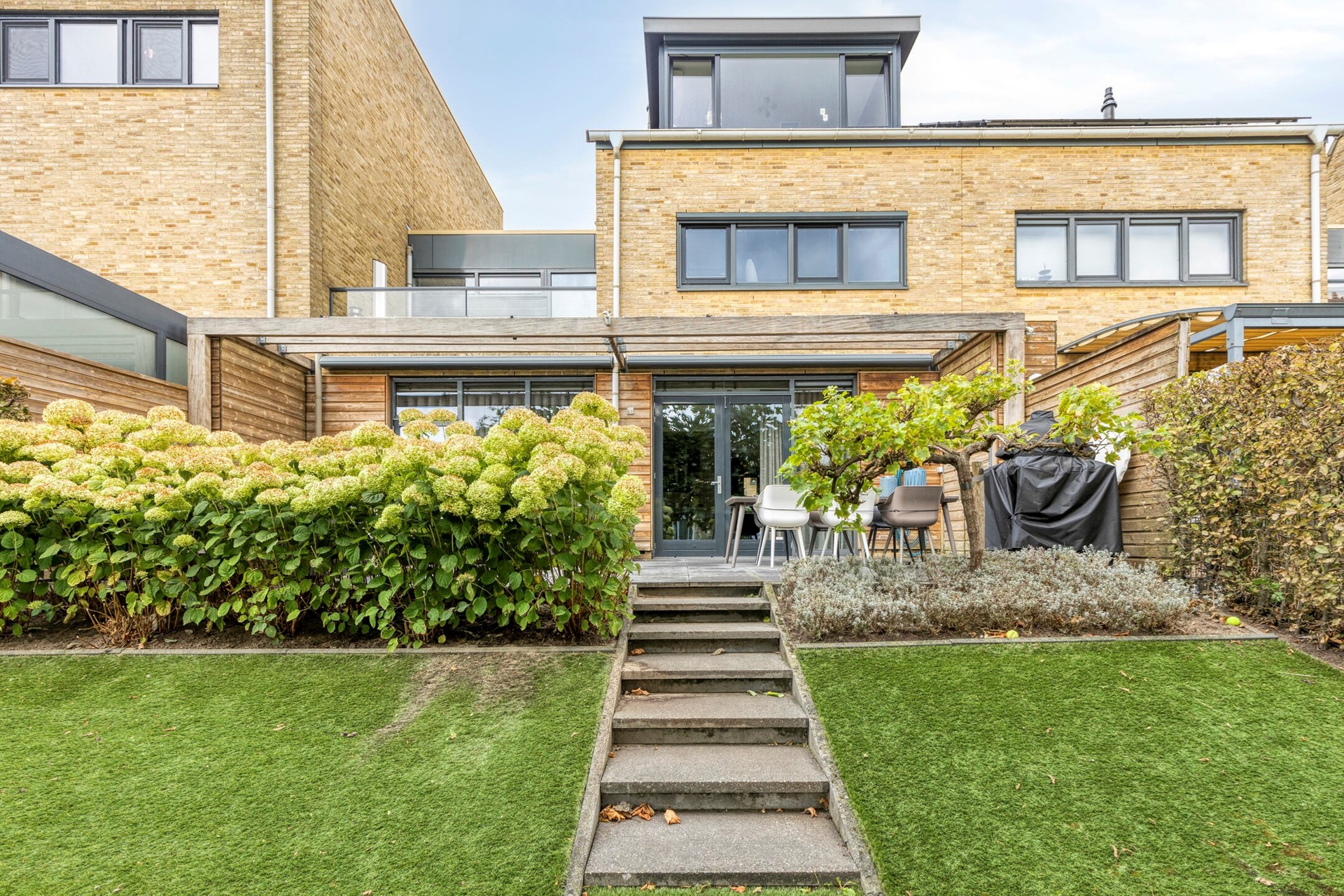 Hoogwaardig afgewerkte 2-onder-1-kapwoning aan de Volgerplas met vijf grote slaapkamers, kantoorruimte op de begane grond, prachtige tuin aan het water met eigen aanlegsteiger en twee parkeerplaatsen.