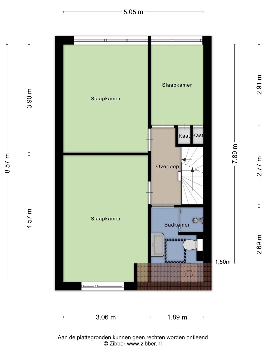 Slaapkamer is gelegen aan de voorzijde en is voorzien van een groot kunststof dakraam voor de nodige lichtinval. Tevens is de kamer voorzien van een kastenwand met opstelplaats van de CV-combiketel (Vaillant, 2001).