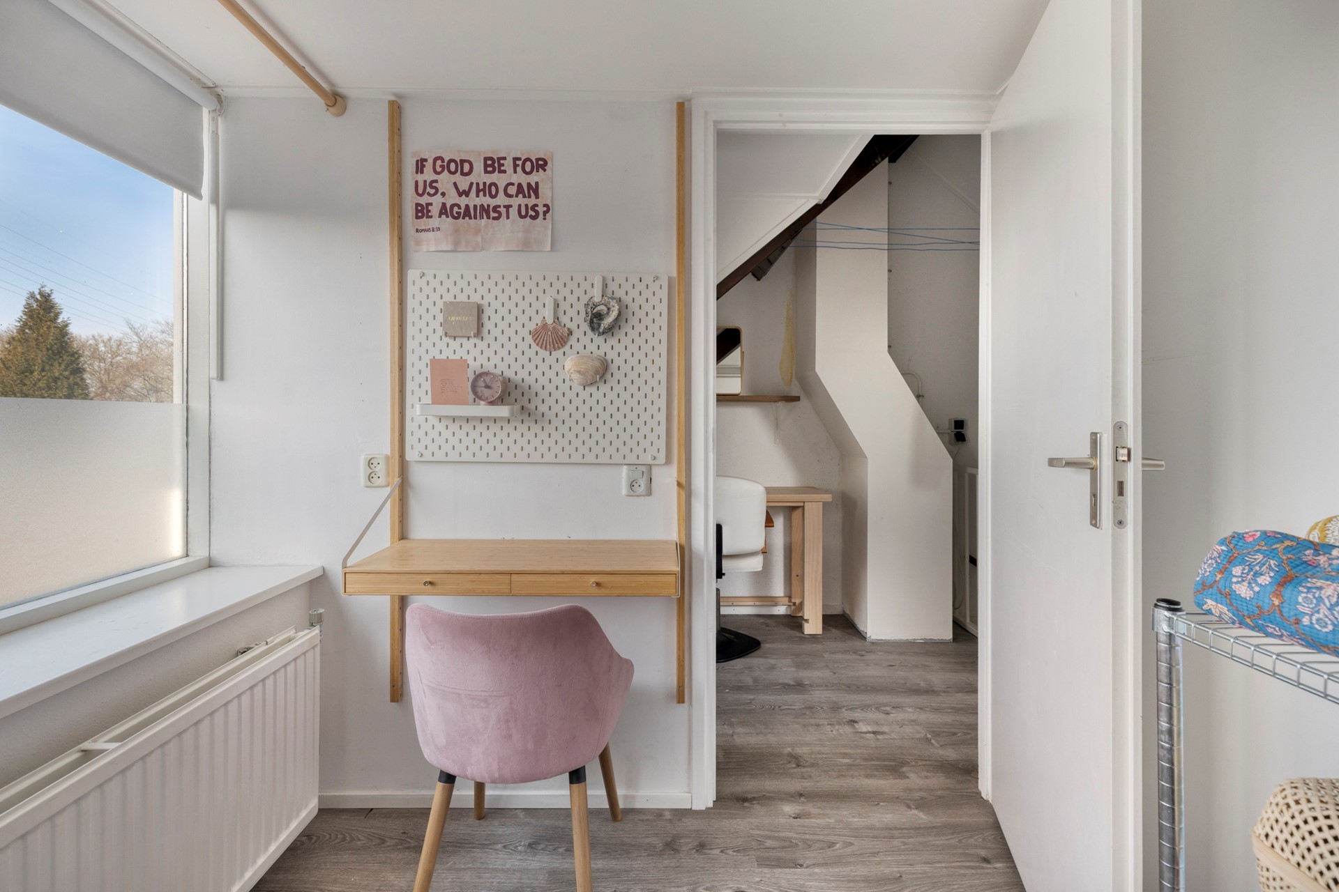 Slaapkamer 3 is gelegen aan de achterzijde en is ook voorzien van een laminaatvloer. Deze kamer biedt tevens plaats aan een inbouwkast.