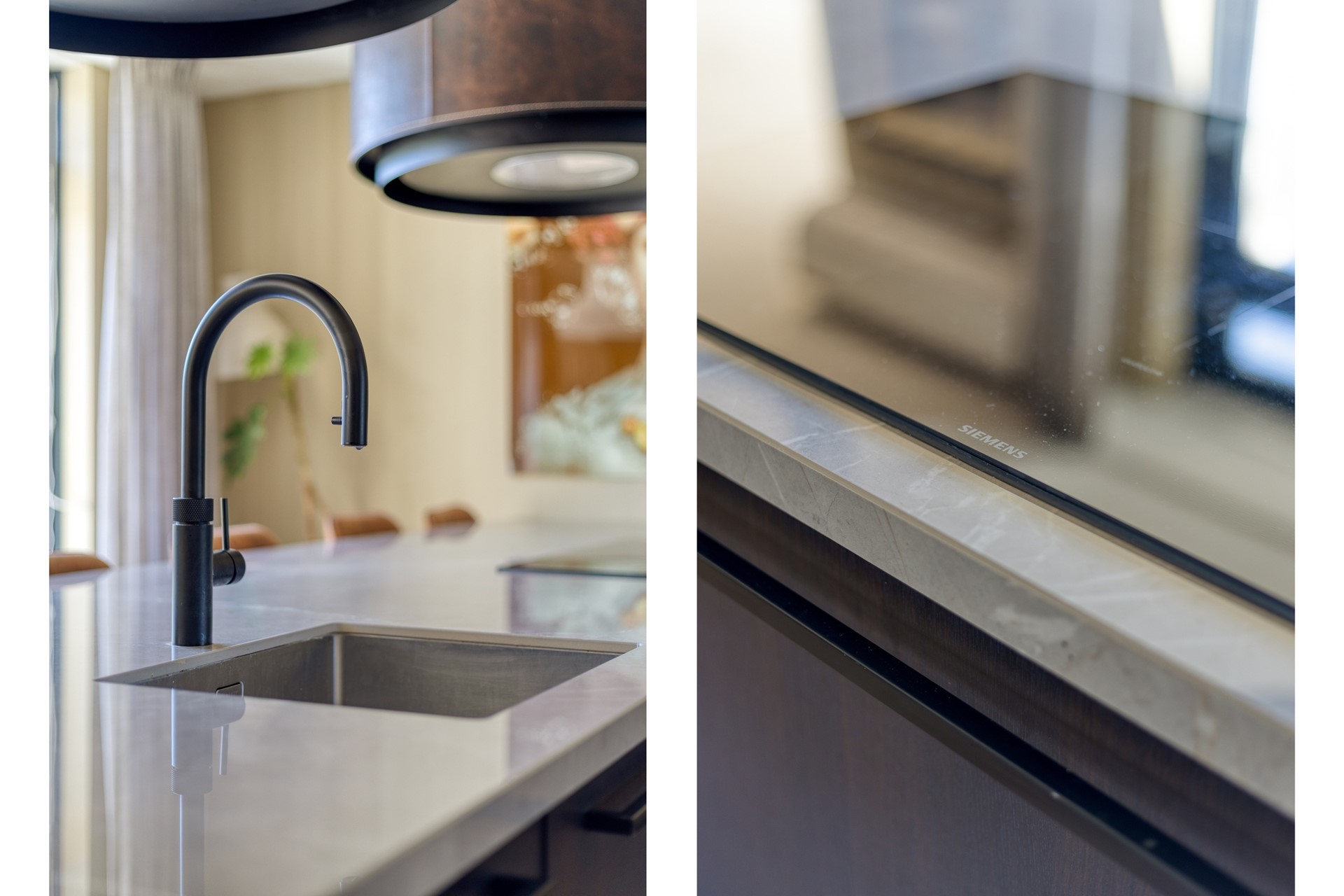 De keuken vormt een ware blikvanger en is in 2024 volledig vernieuwd. De opstelling met kookeiland en kastenwand zorgt voor een luxe en moderne uitstraling. De keuken is uitgerust met hoogwaardige apparatuur, waaronder een Wave afzuigkap en bijpassende lampenkap met levenslange garantie, een vijfpits inductiekookplaat, een Combi-Quooker, een grote koelkast, een oven met stoomfunctie, een combi oven/magnetron en een vaatwasser. Hier wordt koken een echte beleving.