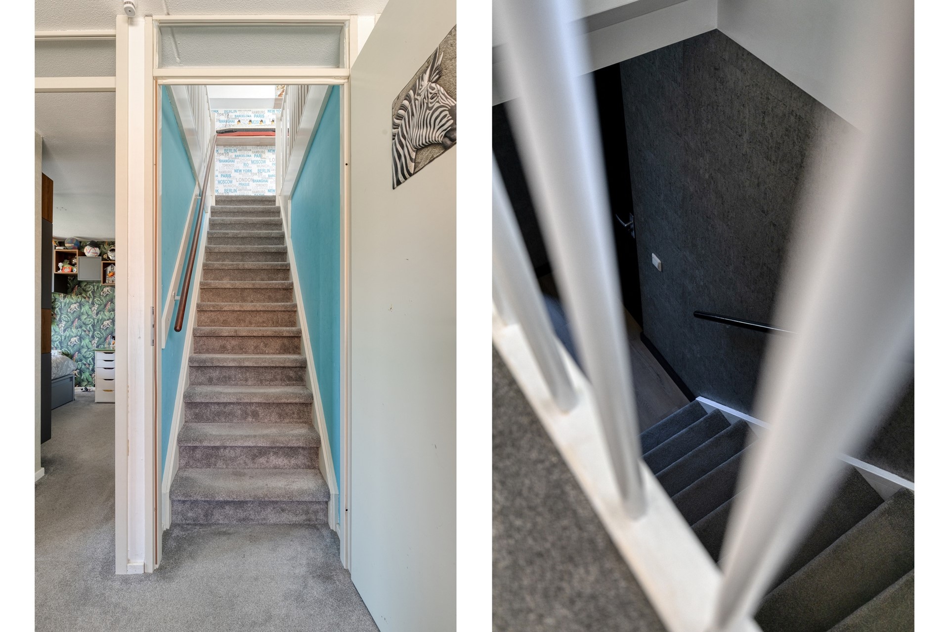 De ruime overloop biedt toegang tot drie slaapkamers, de badkamer en via een vaste trap tot de tweede verdieping. Dankzij het grote zijraam valt er veel natuurlijk licht binnen en de aanwezigheid van airconditioning in het trappenhuis zorgt voor extra comfort.