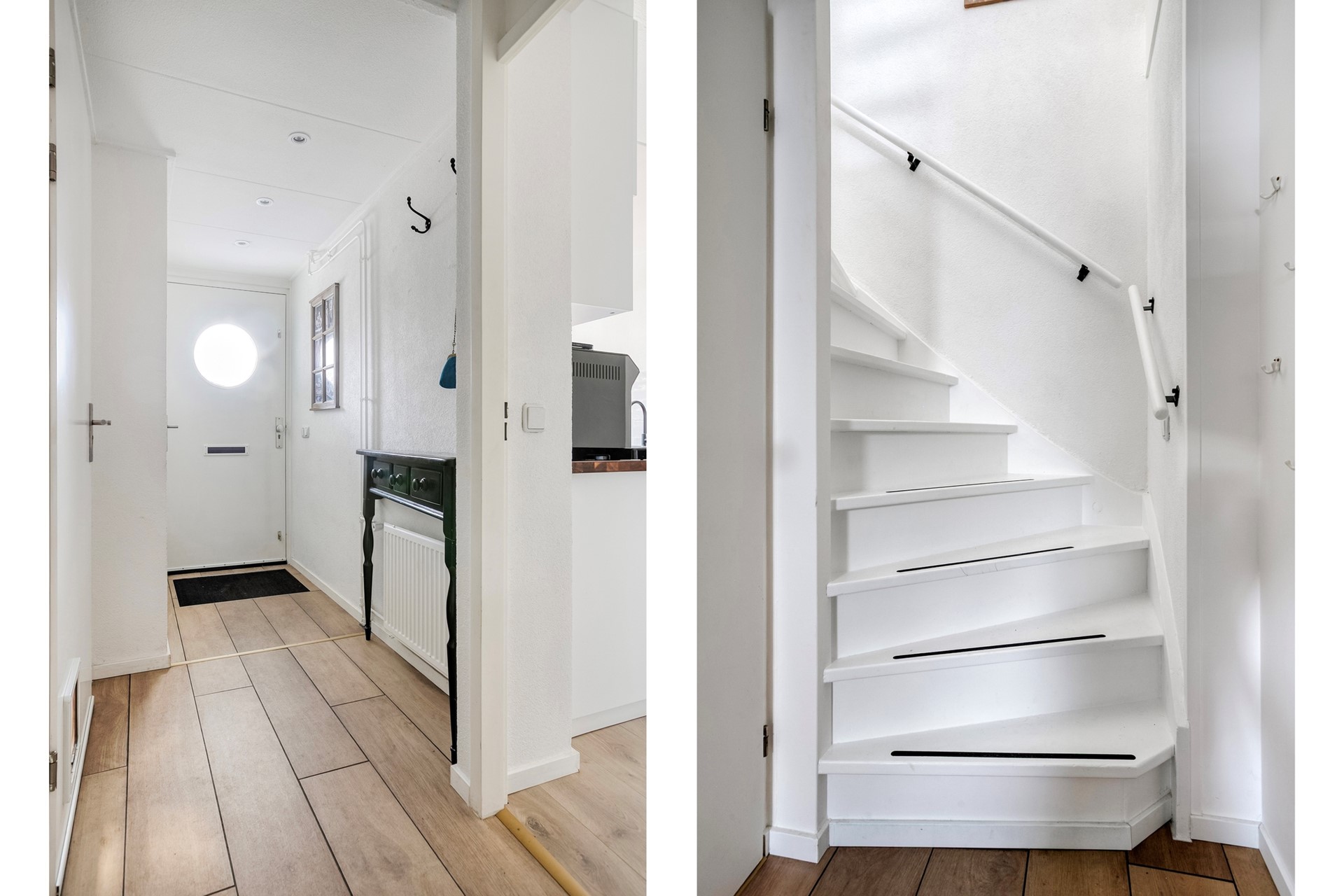 Via de nette entree met tegelvloer, meterkast (8 groepen + aardlekschakelaar) en gespoten wanden en plafonds kom je in een warm welkom. Vanuit hier is er direct toegang tot de garage, het toilet en de trap naar de eerste verdieping.