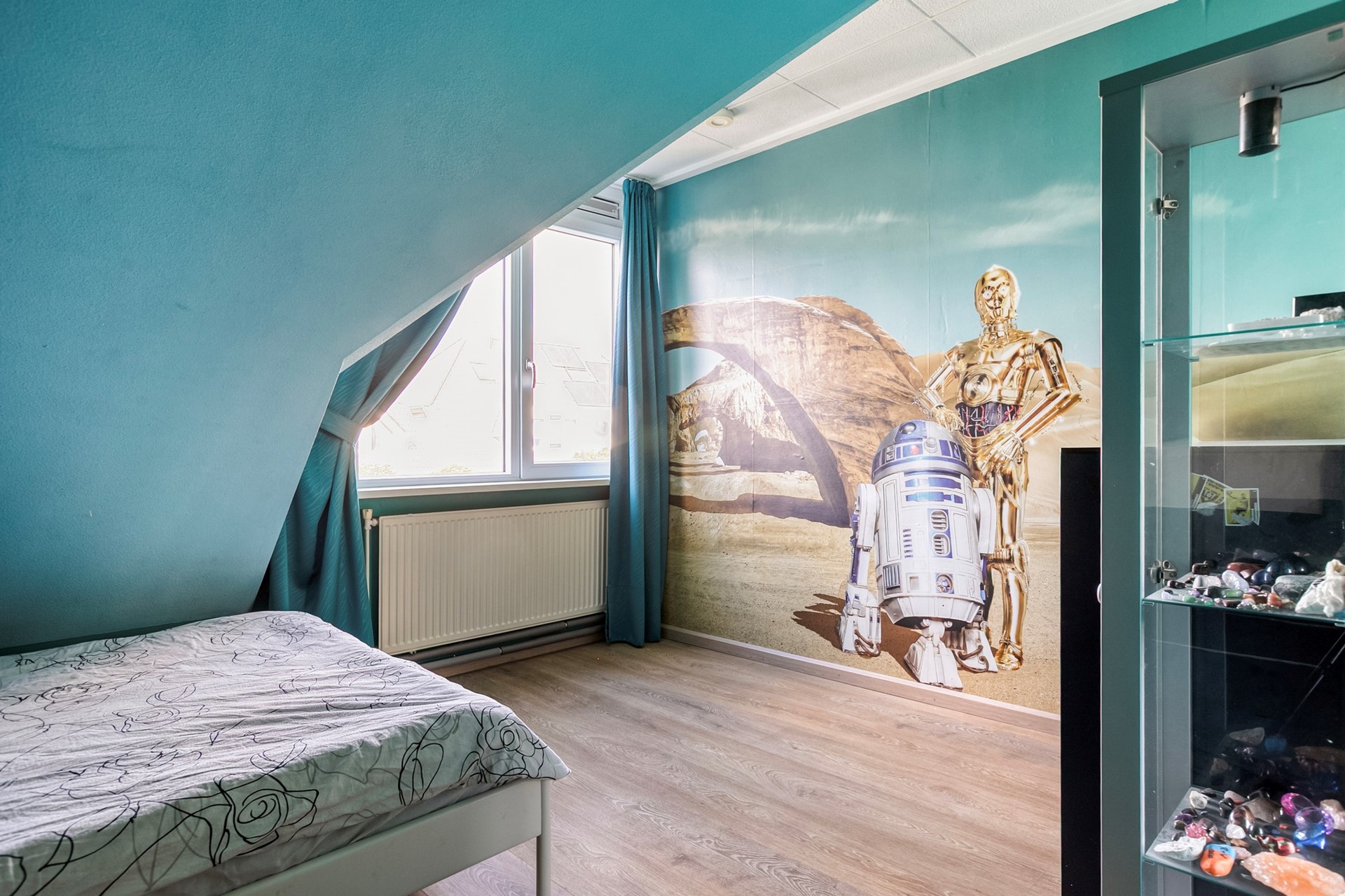 Slaapkamer 2 is ook gelegen aan de achterzijde en voorzien van dakkapel en maatgordijnen. Ideaal als kinder- of logeerkamer.