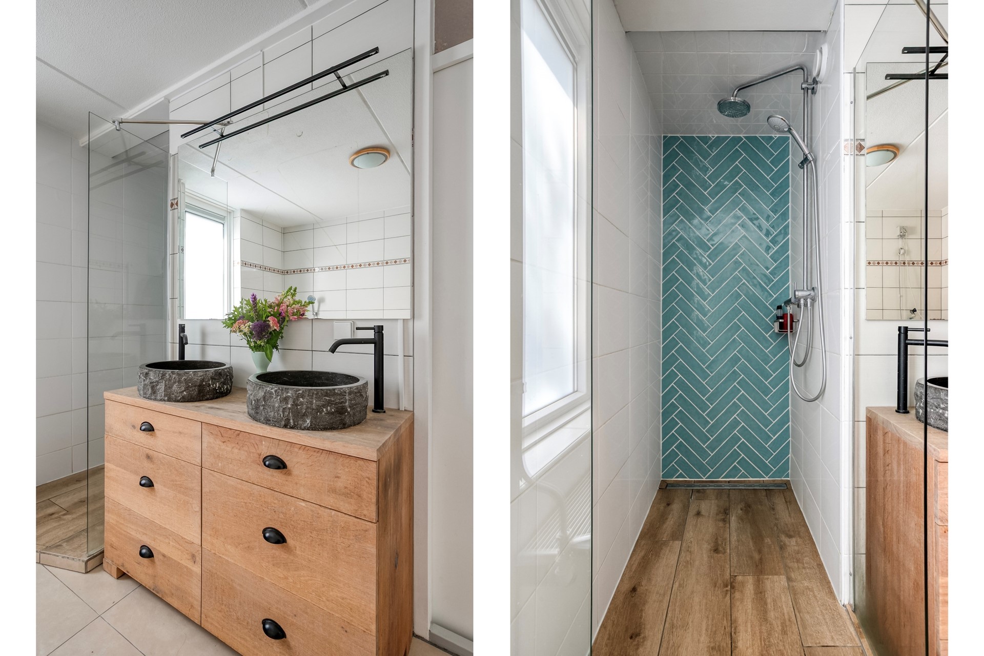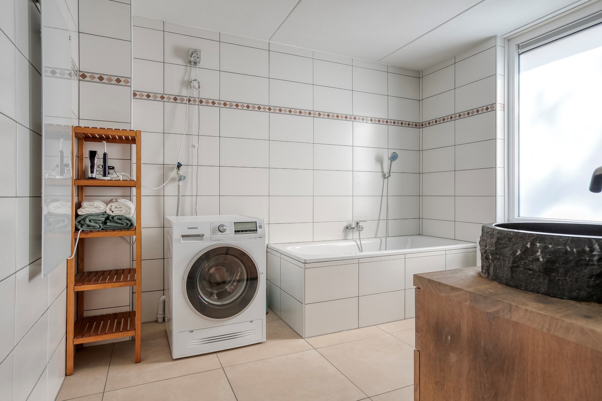 Ruime en complete badkamer, voorzien van een inloopdouche (2018), dubbel wastafelmeubel, ligbad én de aansluitingen voor wasmachine en droger. Volledig betegeld en met een moderne radiatorafwerking. Hier begin je elke dag goed!